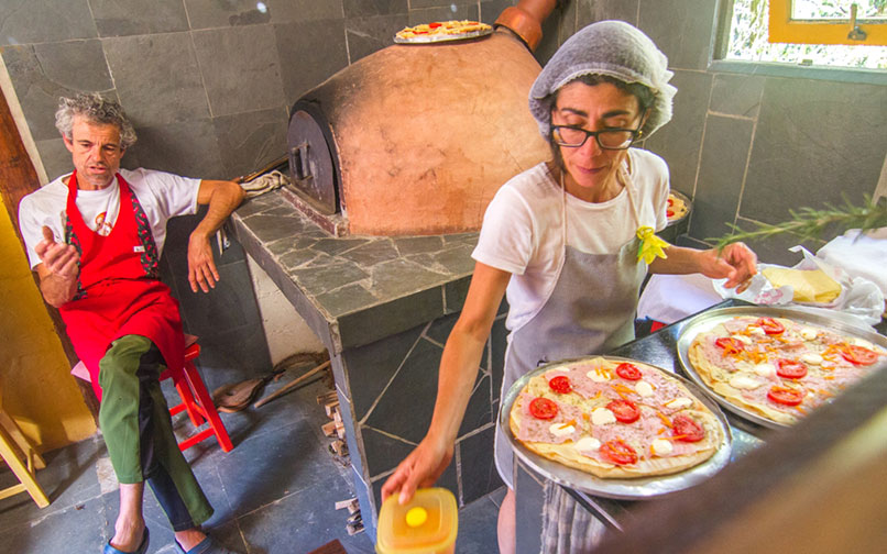 Lá, fomos recebidos pelo renomado escalador Sergio Tartari e a sua esposa Rô, com uma maravilhosa pizza e cerveja artesanal.
