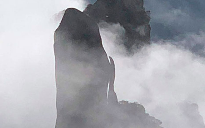 Ao chegar no topo do Garrafão, Serra dos Órgãos, conseguimos ter uma vista impactante aos olhos de qualquer amante da escalada e trilha: a Agulha do Diabo, o Dedo de Deus, Escalavrado, São Pedro e muitos outros picos.