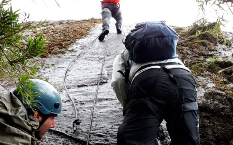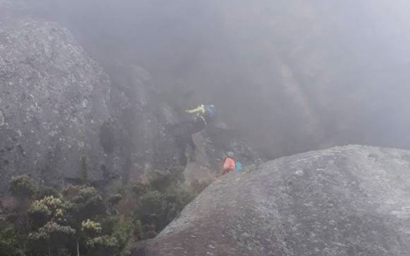 Trecho técnico de escalada para ascensão ao cume do garrafão