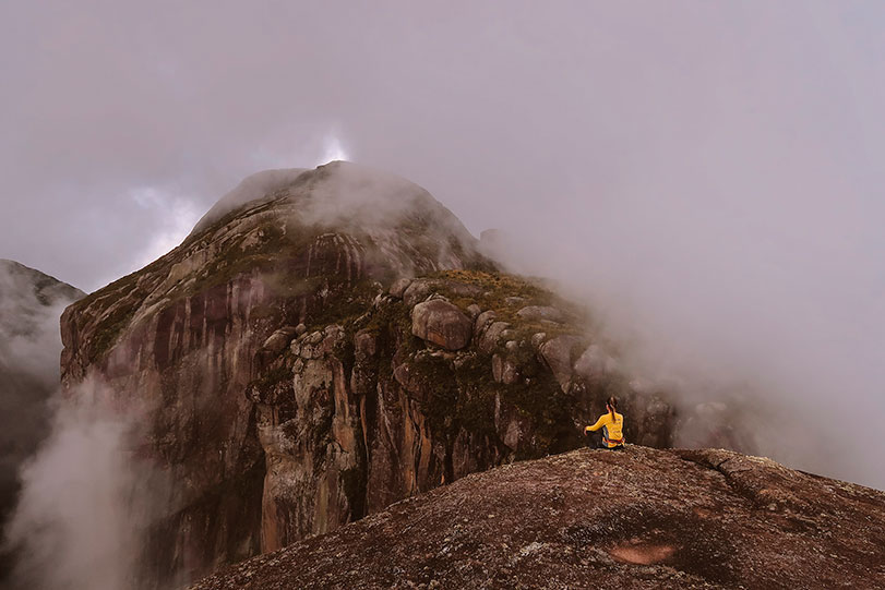 Lá em cima, sobre o Garrafão, a 2.255 metros de altitude, é impossível não olhar para o horizonte e se admirar com a incrível vista para a cadeia de montanhas da Serra dos Órgãos.