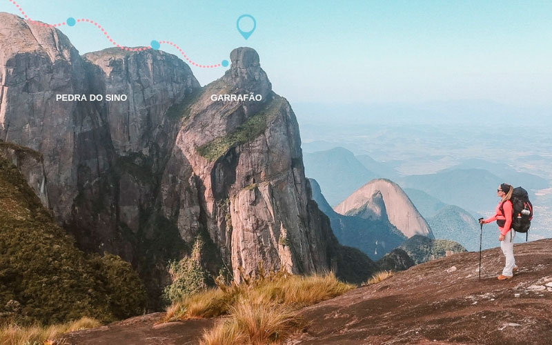 O Garrafão possui uma vista incrível para a cadeia de montanhas da Serra dos Órgãos, mas  para chegar ao cume você precisa passar por trechos técnicos de escalada com técnica de rapel e ascensão em corda fixa.