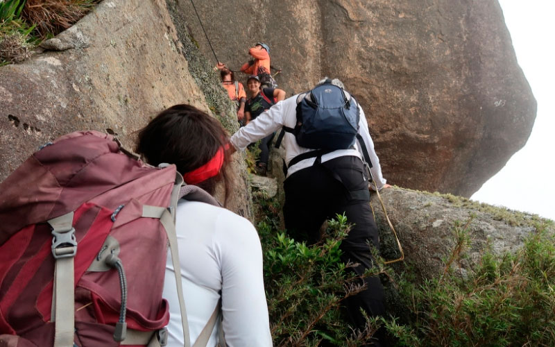 Trecho técnico de escalada para ascensão ao cume do garrafão